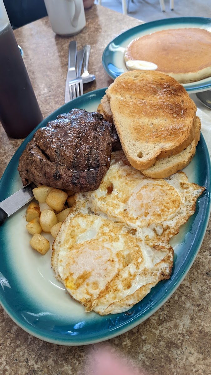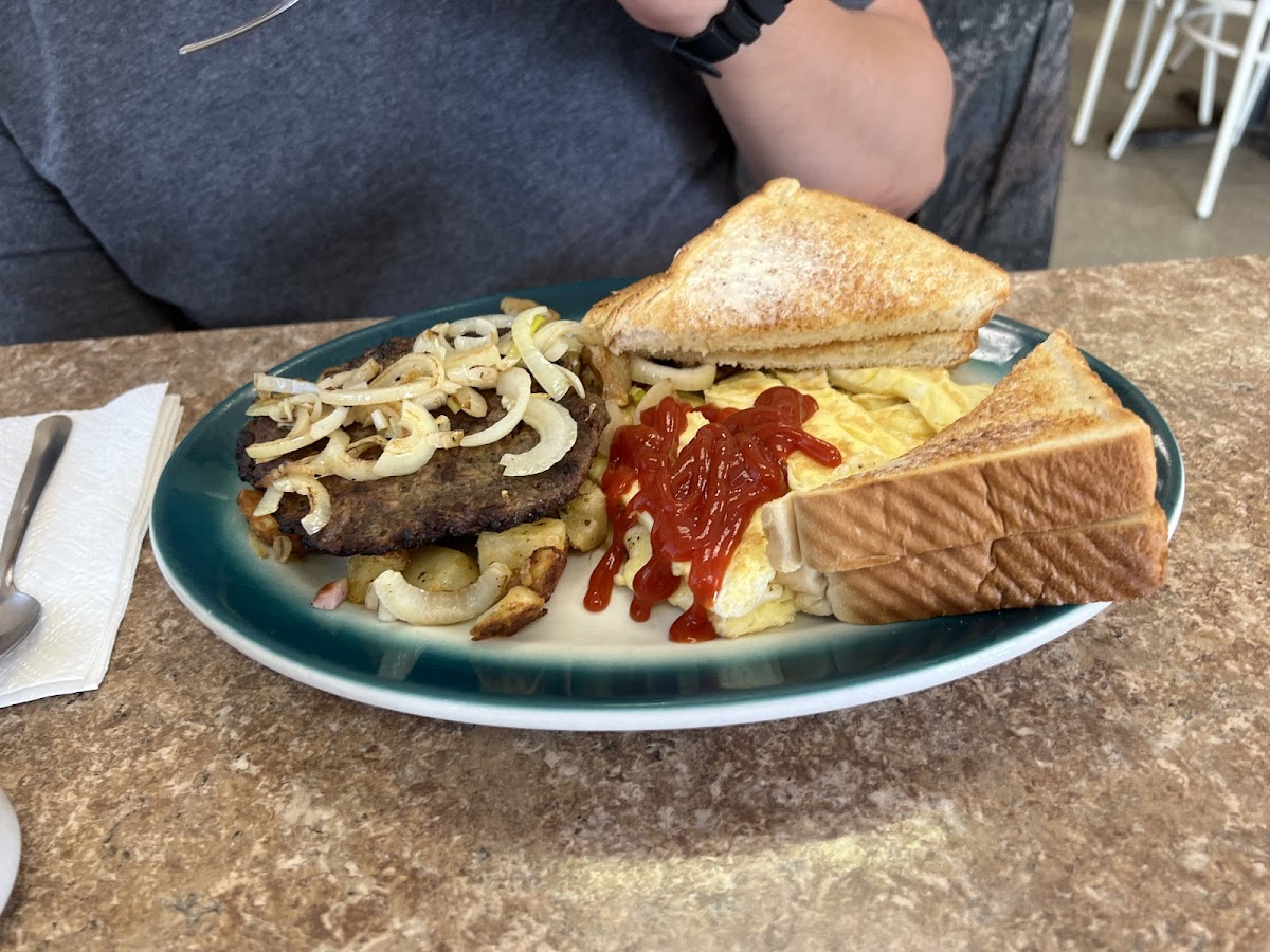 For steak lovers, the Hamburger Steak and Eggs or the classic Steak and Eggs with Toast and Hash Browns never disappoint. Those with a sweet tooth find delight in the French Toast with Eggs and Bacon, while vegetarians often go for the satisfying Veggie Pan Scramble.
